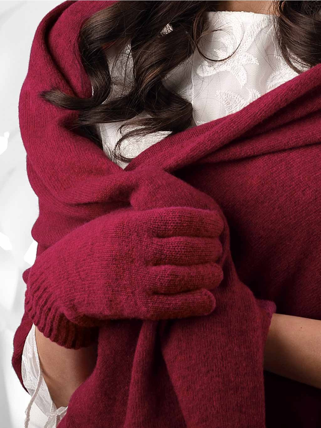 VÍNOVO ČERVENÉ VLNENÉ DÁMSKE RUKAVICE NA ZIMU KAMEA 01